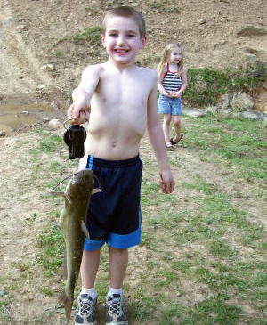 Eight year old, Jakiah Hickman caught a big fish this past weekend in a local pond, where 26 folks were fishing. Jakiah hooked the trophy fish, an 11 pound, 22 inch, catfish.