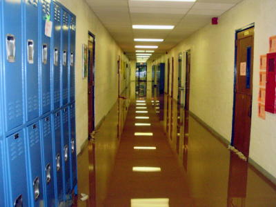Hallway of school and rooms had about