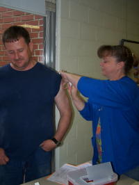 School workers and volunteers lined up to get tetanus shots About 65 clean-up workers, Calhoun school administrators, teachers, bus drivers, service personnel and volunteers labored Tuesday to clean-up Arnoldsburg Elementary School following Monday's flooding. Superintendent of Schools Roger Propst has canceled school again Wednesday, to hopefully get the school ready for students.