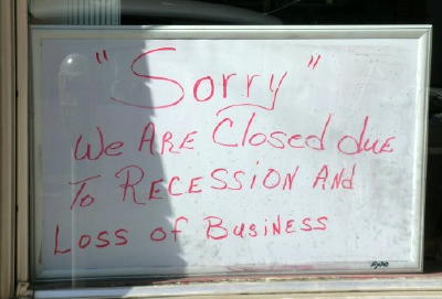 This sign announcing the closing of 'The Kitchen' restaurant a landmark in downtown Clay, West Virginia explains the problem