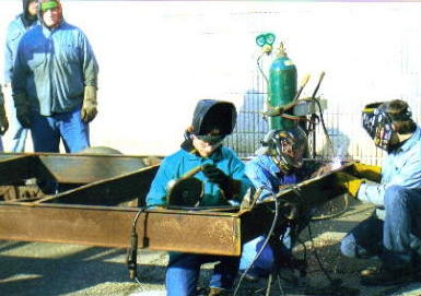 ![]() Calhoun-Gilmer Career Center welding technology class has recently been working on several projects, including fabricating a band mill trailer for Hardway Enterprises. "Since it had to be an outside project we used two portable welders," said Carl J. Collins, welding technology instructor, indicating many of the students who worked on the project have now graduated.