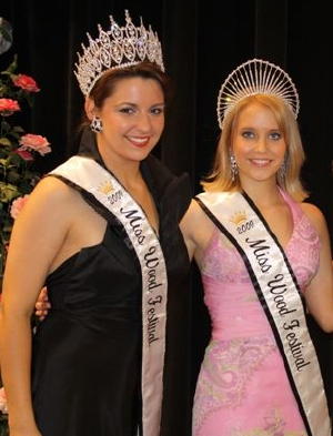 Miss Wood Festival-USA Ashley Rutherford (left) Photo courtesy of Patty Haught The Calhoun County Wood Festival held its annual pageants Tuesday evening at Calhoun Middle High School. Miss Ashley Rutherford was crowned the new 2009 Miss Wood Festival-USA. She is the 22 year old daughter of Charles and Crystal Rutherford of Buckhannon. Miss Maria Kisner was crowned Miss Wood Festival-Fairs and Festivals. She is the 18 year old daughter of Phillip and Patsy Kisner of Millstone. Maria was Queen Flora XLVI (2008). Miss Photogenic is Brigitte Morris. Swimsuit competition winner is Maria Kisner. Interview winner is Ashley Rutherford.