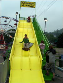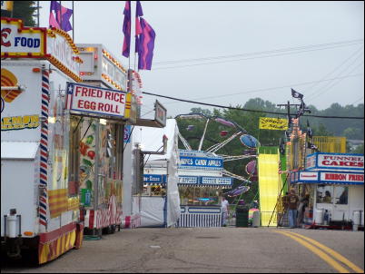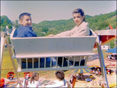 1950's photo of John Anderson (left) and Delma Bower on The carnival has returned to the 47th Calhoun County Wood Festival, in Grantsville. While carnivals and circuses are fading in most small communities, there has likely been such an event in the county for over 100 years. Grantsville and Arnoldsburg carnivals and circuses used to draw huge crowds, with full-fledged shows, often more than once a year. Grantsville's customary spot was what is now Wayne Underwood Field. Arnoldsburg used the nice bottom land near Speedy Mart and other outfits used the Molasses Festival site. The Wood Festival carnival has become the mainstay event for the attraction during the past 47 years.