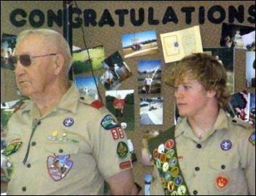 Award-winning scoutmaster Kitty Wilson with Eagle Stevens