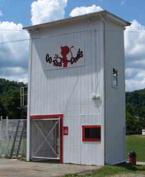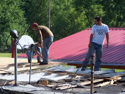A crew of WorkForce WV summer youth program workers re-roofing the snack bar at Wayne Underwood Field ...