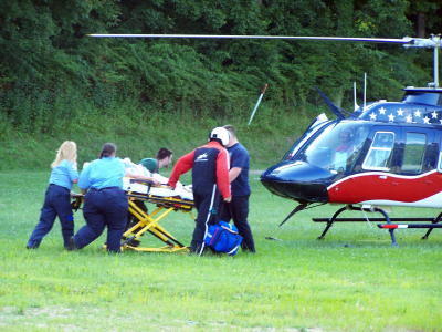A 70-year-old woman received multiple injuries when the UTV she was driving went over an embankment yesterday afternoon on the Right Fork of Daniels Run. Frances Walker, who was reportedly visiting the area, was taken to Arnoldsburg by Calhoun EMS about 5 p.m. where she was life-flighted to a regional hospital by Air Evac. The Arnoldsburg Volunteer Fire Department and Deputy J. D. Smith responded to the accident scene. |