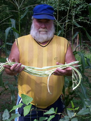 Grantsville resident Bob Cunningham displays his yard-long green beans, grown in his So. Grantsville garden, he says, "They're really good to eat"
