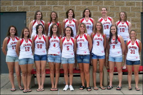 Front (L-R) Hannah Peck, Maria Klingshirn, Karissa Reip, Jordan The Calhoun High School Volleyball team traveled to St. Marys Monday evening, August 24, for a pre-season scrimmage. The varsity won 3-2 in five sets while the JV lost 1-2 in three sets. Prior to the Calhoun County 4-H sponsored Fall Sports Kick-Off Bonfire on Thursday, August 27, Calhoun will host Clay County for another pre-season scrimmage. JV play will begin at 5:30 p.m. in the CHS gymnasium with Varsity play immediately following. The CHS Volleyball Roster: Seniors: Taylor Green Juniors: Michelle Hall, Ashley Houchin, Maria Klingshirn, Karissa Reip, Brook Talley Sophomores: Samantha Church, Rochelle Gerwig, Kenzie Laughlin, Jordan Mace, Amber Wilford Freshman: Brooke Manns, Rachelle Murphy, Hannah Peck, Kristyn Starcher