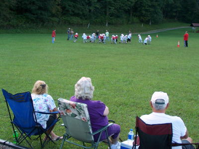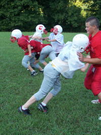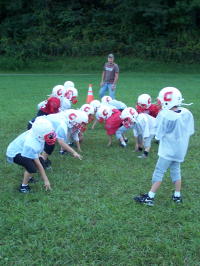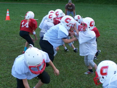 Calhoun's two youth football teams have shifted to the Arnoldsburg Community Center field for practice