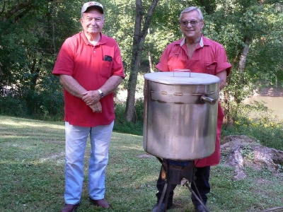 Homecoming cooks Larry Butler (L) and Larry Morton