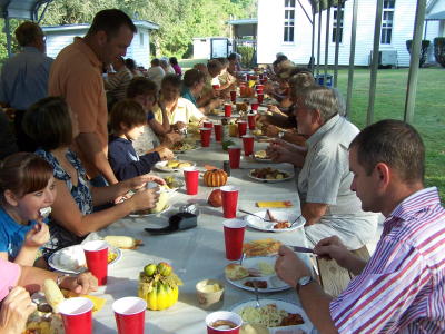 ENON HOMECOMING FOLKS ENJOY ROASTED CORN AND FELLOWSHIP |