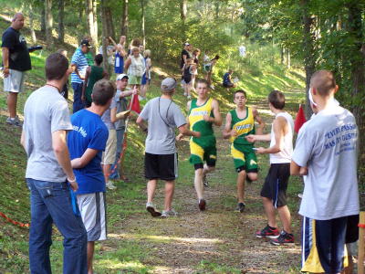 By Gaylen Duskey In a race that was about as razor thin as you can get the Charleston Catholic girls team won the Second Annual Calhoun Invitational championship Tuesday evening at Calhoun Park. Charleston Catholic, led by Sami Harris' third place finish, came in with a team total of 39, one point better than Williamstown (40) and two better than Doddridge County (41). Individual honors, however, went to a pair of Herbert Hoover runners as Erica Hayes took first place with a time of 21:09 while Michala Shamblin was second with a time of 21:57. Kaitlen Collins was Calhoun's top finisher in 35th while Athena Wagoner finished 37th. On the boys side Doddridge took a rather convincing win behind the one-two finish of Tanner Mattie and Daniel Clevenger. Mattie posted a time of 18:56 while Clevenger came in at 19:06 as the Bulldogs scored 31 points to beat Charleston Catholic (40) by nine. Williamstown took third with 59 points. Calhoun's top male finisher was Zach Hanshaw with a time of 21:30 was 15th while Mark Bedree was 43rd with a time of 31:25.