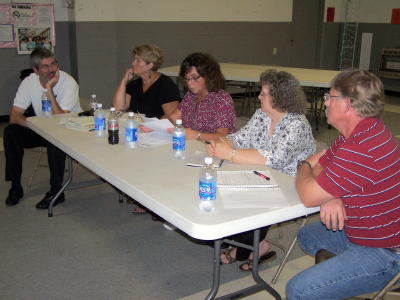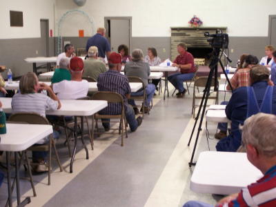 Pictured (L to R) Fred Rader, Mid-Ohio Valley Regional The Mt. Zion PSD voted 2-1 last night in Arnoldsburg to award the waterline construction contract to low bidder Ron Lane, Inc. Lane's bid, which was $200,000 lower than Bruce Allen, had been denied by project engineer Jim Hildreth. Hildreth said his denial of the Lane bid was related to "risk management," while contractor Ron Lane said his performance was covered by bonding. The motion to award Lane the project was made by new PSD member Roscoe Gainer, although there are some official contingencies related to final approval. The $5.2 million 21-mile project has suffered a number of ups and downs. "I hope to see this project get unstuck," Gainer said, "Residents need public water." The board affirmed project engineer Hildreth's recommendation to award the tank project to Mid-Atlantic Storage Systems. Welding, Inc., another bidder on the tank project, continues to contend it was illegal for Jim Hildreth not to open their bid, Hildreth said Welding, Inc. was "not a responsible bidder." Welding, Inc. has declared they plan to bring a lawsuit in the matter. Board member Shirley Mace continued to express concern she had made the motion to approve Lane at an earlier meeting, saying secretary-treasurer Wilma Mace had not recorded it correctly after it was voted upon. "It was not the way I made the motion," Mace said. Board chairperson Sharon Postalwait said Mace's earlier motion had a contingency, indicating it had to be approved by engineer Hildreth. Mace said there was no such contingency in the motion, and PSD secretary-treasurer Wilma Mace, who indicated she did not understand Mace's motion, appeared to make a correction. Chairman Sharon Postalwait appeared to struggle with procedures in conducting the meeting, while sources close to the PSD board indicated formal board meetings with record-keeping had not been a practice over the years. Gainer was appointed earlier in the day by the Calhoun Commission to fill a vacancy left by Della Nichols. Gainer's first action at last night's meeting was to ask Mace for an agenda. Mace responded she did not have an agenda, saying "I was not trained to have one," in her 26 years with the PSD board. During the meeting, the board went into executive session, which was apparently related to board members seeking legal advise from their attorney Tom Whittier. Project engineer Jim Hildreth fielded several questions asked by Gainer.