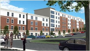 An artists rendition of the new dorm being BBL Carlton, of Charleston, are the general contractors. The building's footprint will cover two-thirds of an acre. When completed the building will begin near what was the entrance to the Wesleyan building, sweeping in a curve toward the Mollohan Center to within about 60-feet of it. Dr. Peter B. Barr, GSC president, said to see such a rejuvenation at the school is incredible. "There's no more deserving community," indicating the modern facility will facilitate continued enrollment increases, as well as significantly impacting the economy of the region.