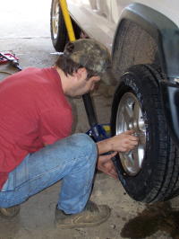 J. Burkett (left) offers tires, oil change, brake