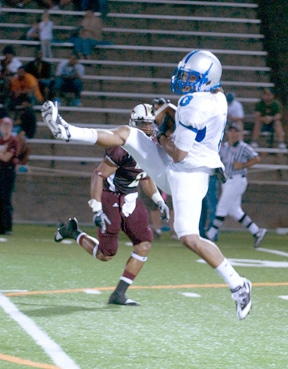 ![]() Xavier Glenn (5) catching a 34 yard McCants pass. Story and photos by Drew Moody By about the length of time it takes to smoke half a cigarette I began to wonder if there was a "mercy rule" in football, at Thursday's game in Fairmont. Research at a later date will determine if any records were set for the number of points scored with the fewest amount of plays in the least time.