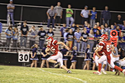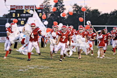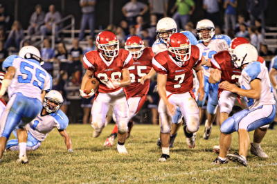 By Gaylen Duskey A couple of turnovers here and a couple of missed tackles there ... minor things all. But against a team that plays as well as Parkersburg Catholic does, minor things can mean a lot and that's exactly what happened Friday night as the Crusaders handed Calhoun County its first loss of the season - 39-29 - ruining the Red Devils' homecoming. Jake Brunoni scored three touchdowns from PCHS while Cole Cwynar added a pair. Geno Demaio also had a pair of field goals for the 3-0 Crusaders. For Calhoun four players got into the scoring act as Cory Metz, Darrenger Fluharty, Randy Fluharty and Bronson Clark all scored. Ironically all scored from long distance as Metz had a 46-yard score, Randy Fluharty scored from 45 and Darrenger Fluharty from 44. Clark caught a 24-yard pass from Zack Moore for Calhoun's final touchdown. The game was close throughout but probably more so in the first half when it took a Demaio field goal with no time left on the clock to give the Crusaders a 15-13 lead.