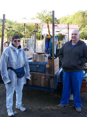 ... display inexpensive wind chimes from re-cycled materials Big Bend area residents George and Mary Ann Tilton brought their collection of wind chimes to sell at the Grantsville City-Wide yard sale Saturday. The inexpensive chimes are crafted from ordinary and readily available materials, including recycled parts, and can be purchased for Christmas gifts by contacting them at 304-354-7894. The Tiltons retired to Calhoun a few years ago, after living in New Jersey where he was involved with fish hatcheries. |