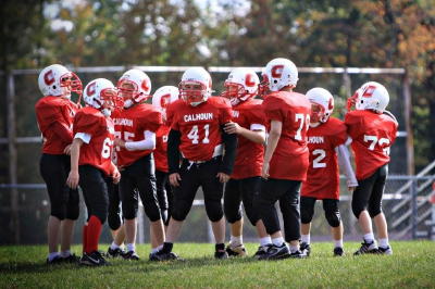 ![]() Red Devil B Team in the huddle (Photos courtesy of Patty Haught) The Calhoun Little Red Devils, youth football teams played their final game of the season on a beautiful fall afternoon Sunday at the Calhoun Middle-High School football field. Both the Calhoun B and C teams lost to the Gilmer County youth teams.