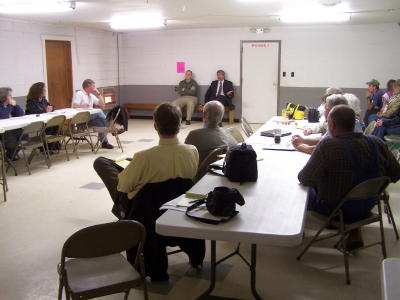 Mt. Zion PSD board members (L to R) Shirley Mace, By Bob Weaver More problems are challenging the Mt. Zion PSD board. The board was advised last night that a pipe bid submitted by contractor Ron Lane, Inc. for Calhoun's $5.2 million water project could not be accepted because of policy. RUS, the government agency, said the Lane bid contains locked-in costs for materials linked to time frames, indicating they do not accept bid extensions with price adjustments. The PSD board is seeking further direction from officials regarding the matter, either to award the pipe bid to Allen Construction or to consider an option to rebid. A special meeting will likely be called over the bidding problem. After a question regarding money to fix problems, board member Roscoe Gainer said "We don't have a clue how much money we've got," implying the information has not been made available to be board from secretary-treasurer Wilma Mace. Mace did not show for the meeting, nor did she send the agenda. Following a phone call to Mace, she advised board members she was ill. Board members clarified an issue raised at last month's meeting regarding whether or not the board voted on pay increases for Jim Hildreth's engineering firm. Board member Roscoe Gainer said no records exist approving the increases. The increases, some of which were based on hourly work, could have resulted in a few hundred thousand dollars for Hildreth's firm. Attorney Tom Whittier said, "If it was not acted upon by the board, it is not legal. It needed to be approved by the board." "No agenda. No minutes. It didn't happen...The matter did not properly come before the board," Whittier said. Board member Gainer said he and the other board members went to Mace's house to review records and minutes, and could find none related to the matter. See related story MT. ZION PSD QUESTIONING MAJOR $$$ INCREASES GIVEN ENGINEERING FIRM The board is seeking counsel regarding where to go from here.