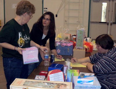 ![]() L-R - Bridgett Harris, Alley Snider and Samantha Cason sort clothing