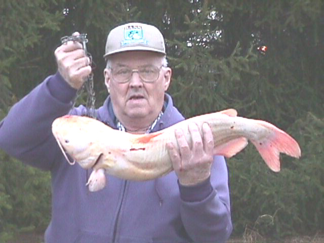 ALBERT SELMON CATCHES RARE FISH - Eight Pound Albino Catfish |