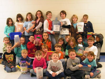 ![]() Pleasant Hill students display "Coins for Haiti" collection