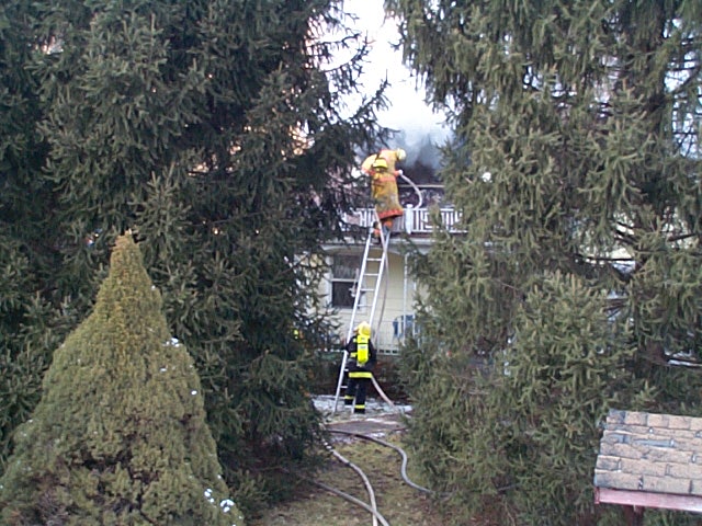 Fireman battle blaze While the fire was quickly brought under control, firemen continued to douse the flames for nearly 45 minutes from the roof of the second story. No immediate cause for the blaze could be determined.