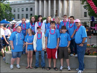 Of course these students didn't come to Charleston by themselves. Parents were also dragged into their "adventure". Parents' alarm clocks probably went off first. I'm sure most of the kids were asleep when parents made the long drive to Charleston, and many jumped right in beside the kids, working just as hard. Parent efforts were greatly appreciated. I promise the next "adventure" will be closer to home. The Susan B. Komen Race for the Cure raises significant funds and awareness for the fight against breast cancer, celebrates breast cancer survivorship, and honors those who have lost their battle with the disease.