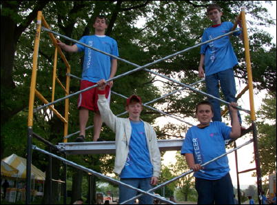Front Row (L-R) Caitlin Roberts, Brooklyn Smith, Lucas By Dan Cosgrove The Sunday Charleston Gazette-Mail Newspaper had an article and pictures of people who attended Komen's Race for the Cure in front of the Capitol Building on Saturday. What they didn't tell you was about a dozen Calhoun Students who were instrumental in making it a successful event. A request was made, if Calhoun Middle could provide about a dozen students to help set up for the race. Seventh grade students were asked if anyone was interested, and about 70 students volunteered. Through a random drawing the list was finally narrowed. The Race started at 9:00 a.m. However, the volunteers had to start around 5:30 a.m. Do the math and you can quickly see alarm clocks in Calhoun were going off at about 4:00 a.m. Saturday morning.