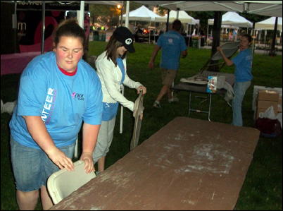 Students worked all morning, setting up tables and chairs, building scaffolding to hold the banners and balloons, tying up the banners, moving tons of ice, filling up huge containers with bottled water and yogurt, staging box after box of bananas, and placing trash receptacles around the capitol, and checking them throughout the day. During the race these students became cheerleaders, encouraging the runners and walkers. Some even ran with runners near the finish line, motivating them to make a strong finish. When the race was over, students took a deep breath of relief until they realized there was still the clean-up!