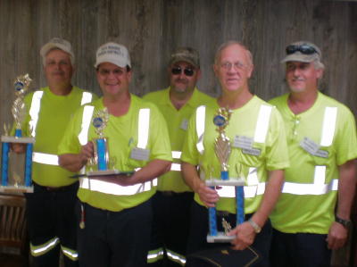 Front (L-R) Donald Wilson and John Shaffer; Back Five Calhoun Highways employees entered the 2010 WVDOT/DOH, Operator's Safety Awareness Roadeo, held May 7 at the equipment division in Buckhannon. Participating were, John Shaffer, Donald Wilson, Jim Harris, Todd Ulderich and Rick Hopkins. John Shaffer placed 1st and Donald Wilson placed 2nd in tandem axle truck competition. They will go to Mississippi in the fall to compete in the National Roadeo. Jim Harris was in the single-axle competition and placed 1st. He will also compete in Mississippi. Rick Hopkins placed 4th in backhoe, and Todd Ulderich placed 4th in lowboy competition. Only 1st and 2nd in each category will compete in Mississippi. "It was a fun-filled day and a good chance for everybody to get together. Everybody who works here at Calhoun County are very proud of all our guys for the great job," said County Highway Administrator, Charles R. Holmes.
