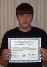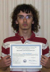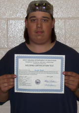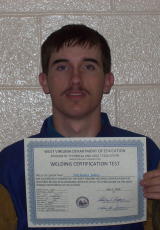 L-R: Matthew Talbert and Jarrod Claypool. Not pictured but Twenty-four certifications have been issued to Calhoun-Gilmer Career Center, Welding Technology students during the 2009-2010 school year. "It has been an exceptional year for our program," said Carl Collins, Welding Technology Instructor. "All of the students have worked very hard and deserve to be recognized for their dedication in achieving these certificates. They all have an opportunity to work toward a variety of welding certifications," Collins said. Collins says he does not force his students to take this test, but they are encouraged to leave the program with some kind of achievement that will perhaps help them in their career. Post graduate student, Zech Cosner will compete at the national SkillsUSA competition this week in Kansas City, Missouri. The most recent certifications were issued to Taylor Welch, George Short, Jr., Caleb Robinson, Peter Vassilopoulos, Nicholas Jones, Justin Wood, Matthew Talbert, Jarrod Claypool, Camden Kinder and Calvin Knotts. "I would like to wish Zech and all of the seniors the best of luck in the future and please stay in touch," said Collins.