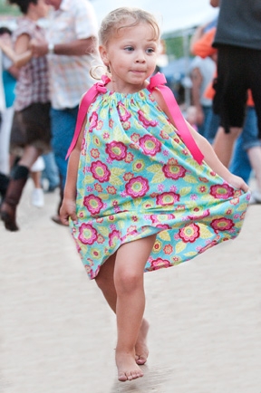 Laura Quinn Hacker, age 3, gets her steps down at the (Photos by Drew Moody) The 61st Annual West Virginia State Folk Festival is now a part of history. The heat and humidity was stifling, perhaps contributing to what appeared to be reduced attendance this year. Despite the weather, nothing dimmed the enthusiasm of the evening square-dancers downtown. Glenville State College hosted the annual under and over 50 banjo and fiddle contests. In the over-50 division, Ivydale's John Morris walked away with two First-Place ribbons in the fiddle and banjo contests. Betty Vornbrock of Hillsville, VA, took second in fiddle, and Carl Baron of Gwynned, PA, captured third.