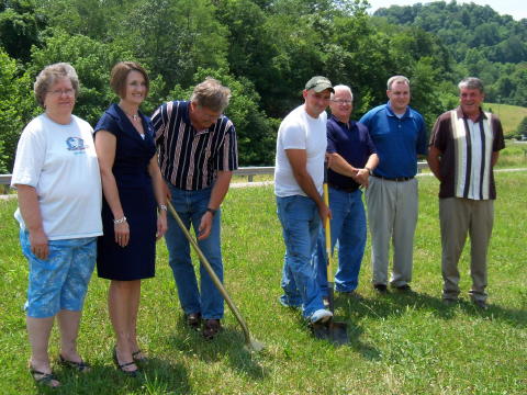 ![]() Yesterday there was an official ground breaking at Arnoldsburg for Calhoun's $5.2 million, 21-mile waterline extension that has faced enormous hurdles, (L to R) Shirley Mace, Mt. Zion PSD Board; Virginia McDonald, USDA; Roscoe Gainer, Mt. Zion PSD Board; Kevin Helmick, Calhoun Commissioner; Chip Westfall, Calhoun Commissioner; Tim Meeks, Mid-OH Valley Regional Council and David Walker, House of Delegates (Photo by Bob Weaver) |