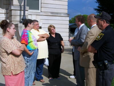 Members of the Hicks-Groves families meet Members of the Hicks-Groves families were in the courtroom, but will have to return to read their statements when Rush is sentenced. Sentencing will follow a 60-day evaluation at Anthony Center, requested by his defense attorney Teresa Monk. Rush was 16 years old when he says he killed Groves and Hicks with a shotgun while they were sleeping. He had been living with with the couple. He was originally indicted in Calhoun in 2004 on two counts of first-degree murder, one count of first-degree robbery, one count of burglary, one count of grand larceny, two counts of conspiracy to commit murder and one count of conspiracy to commit robbery. The case then became mired with misconduct by State Police at the Grantsville detachment with lost evidence, including money and guns. The most recent problem was the tainting of the jury by Cpl. Doug Starcher, having lunchtime conversations with jurors. The results of internal investigations by the agency have not been released, nor is there any record of officers being charged. Special prosecutors Hill and Harvey declined to comment about the missing money and guns, indicating it would be improper at this time. There was an earlier effort by former prosecutor Matt Minney to reach a plea agreement with Rush that fell apart, with Minney having moved to vacate the agreement after Rush gave inconsistent statements and changed his story several times. Rush first said he shot the couple while under the influence of methamphetamine, before changing his story to say that an accomplice actually killed the couple. Family members who were not able to give their statements, congregated outside the courthouse, venting their frustration with the drawn-out trial and plea deal, particularly that Rush could soon see his freedom. Several spoke to WSAZ-TV, WCHS-TV and regional reporters.