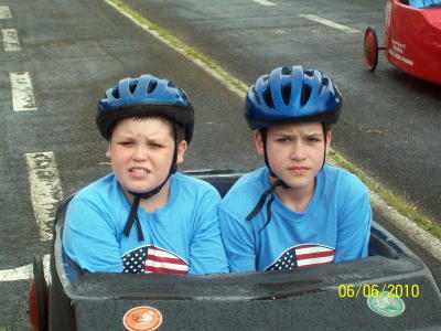 The Neely brothers, Preston (left) and Eleven year old Preston Neely, with his 13 year old brother and co-driver, Kurtis took second place in the annual Kanawha Valley Soap Box Derby Special Division race, June 6th at Little Creek Park in South Charleston. Thirteen racers were paired with an experienced co-driver for the "The Thrill of the Hill" race, down a 980-foot hill. The cars exceed 35 mph on gravity feed. First, 2nd and 3rd place winners advance to the Super Kids Classic at Derby Downs in Akron, Ohio. The Neely brothers were sponsored by Baker's Mart and Neely's Farm. Preston has participated in three Special Division races, winning 2nd place the past two years. He has met racers from all over the United States and Canada. He enjoys the event and loves to ride down the hill and win trophies. He will race at Derby Downs in Akron on July 23rd hoping to be among the top 6 finalists that will race in the All American Soap Box Derby Race on Saturday, July 24th.