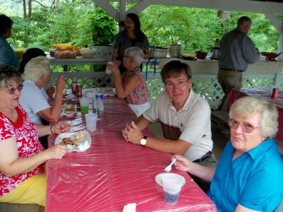 ![]() 200 years ago it would have been dinner "on the ground," but Sunday was the luxury of a picnic table at Orma UM Church homecoming