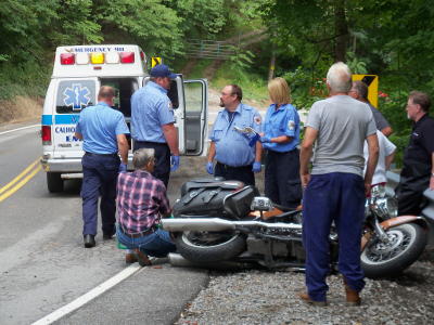 ![]() A motorcyclist was a victim Saturday to a sharp turn on US 33-119 east of Sand Ridge, the man reportedly received a fractured leg and multiple other injuries. The accident happened in a downhill area just off Sand Ridge, a spot that has been the site of other crashes for cyclists over the years. He was taken to Charleston Area Medical Center by Calhoun EMS. The Arnoldsburg VFD also responded to the incident. The out-of-area rider was accompanied by two fellow riders.
