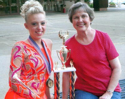 ![]() Taylor with coach, Lorraine Bailey of Orma Both girls are coached by Lorraine Bailey of Orma, who has continued putting West Virginia on the twirling map. She has been producing state, regional, national, and international champs for many years, and loves working with her students. Lorraine judges National, International, and Jr. Olympics contests all over the US.