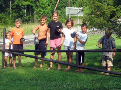 Pictured left to right - Summer Parsons, Jordan Yoak, Adam Parsons, Seven community-minded children have undertaken a project, painting the bumpers and rails around the parking lot at Pleasant Hill Elementary School. The children's aunt, Kaye Yoak encouraged her young nieces and nephews in the venture. "I thought it would be a nice project they could do, to teach them how donating time to your community can make a difference," Yoak said. Summer, Chase and Garrett are the children of Robby and Stephanie Parsons. Jordan and Carissa Yoak are the children of Eddie and Dawn Yoak. Kaylin and Adam are the children of Paul and Lori Parsons.