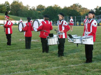 Band members play the anthem Calhoun was held to 206 yards total offense and 11 first downs with Clark leading the way with 107 yards on 12 carries. Calhoun's offense was hampered greatly by the injury loss of starting running back Cory Metz, who suffered a knee injury against Ritchie County last week and may not return. Without Metz, Doddridge was able to key on Clark holding him to 14 yards in the first half before he got untracked. Calhoun did have some spectacular moments from Cosgrove, who along with his 47-yard scoring run, was also able to come up with 132 returns yards including a 51-yard kickoff return in the first quarter. Calhoun will try to get back on the winning track when it travels to Parkersburg Catholic next Saturday night.