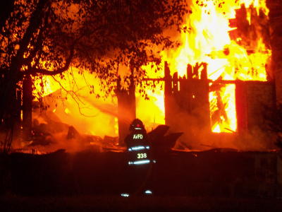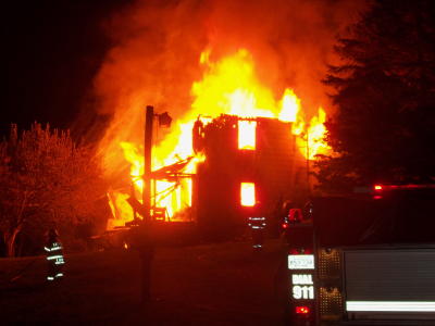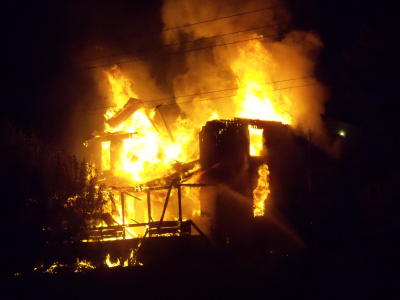 Fire had headway when firemen arrived at landmark Letherbark house A roaring fire destroyed one of Letherbark's landmark houses Saturday night, with the Arnoldsburg and Upper West Fork Volunteer Fire Departments responding at 11 p.m. Flames leaped 75 feet into the air from the two story structure along US-33 119, west of Arnoldsburg. Firemen first feared that the 90+ year-old occupant of the house Pearl King might have been in the dwelling, although neighbors reported they made entry into the dwelling yelling for her with no response.