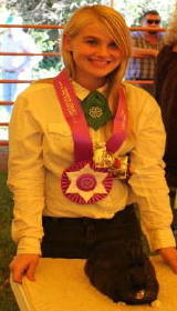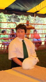 Kate Page, FFA, Grand Champion The showmanship show took place at 4:00 p.m. The results are as follows. Grand champion dairy goat showman, Angel Bee, Silver Spurs 4-H; Grand champion market goat showman, Alex Cunningham, FFA; Grand champion calf showman, Kate Page, FFA; Reserve champion calf showman, Brooklynn Nicholson, Silver Spurs 4-H; third place calf showman, Trent Cottrell, Silver Spurs 4-H; fourth place calf showman, Eli Stump, Pleasant Hill Cornpoppers 4-H. Fifth place calf showman, Josh Summers, FFA; Grand champion market hog showman, Angel Samples, Silver Spurs 4-H; Grand champion market rabbit showman, Brooklyn Nicholson, Silver Spurs 4-H; Reserve champion market rabbit showman, Kody Schultz, Silver Spurs 4-H; third place market rabbit showman, Christopher Schultz, Silver Spurs 4-H.