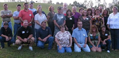 Kneeling (L-R) Danny Yoak, Bob Deuley, Keith Smith, Bev Scott Submitted by Debbie Zimmerman Bush The Calhoun County High School Class of 1980 held their 30 year class reunion Saturday, September 25th at Calhoun County Park's Herbert C. Smith Community Building. They met and sat together at the Calhoun football game Friday. Many had not seen each other in over 30 years. Some attending traveled from as far as Georgia, North Carolina, Parkersburg, Ohio, Maryland and Kentucky to attend the reunion. Special guests were past teachers, Helen Morris, Bob Bonar, and Marvin Stemple. It was discussed and decided that their next reunion will be in 5 years. A memorial table was set up to remember the deceased classmates Joe Burrows, Renita Wager, Bob Reichard, Harold Cunningham, DeeDee Dawson, Karen Bourne, Bill "Biff" Barker.