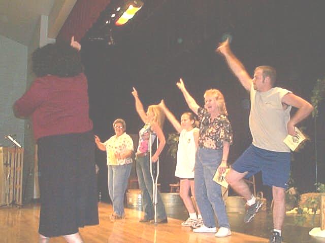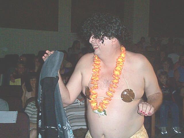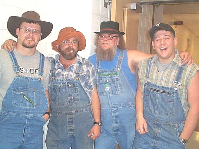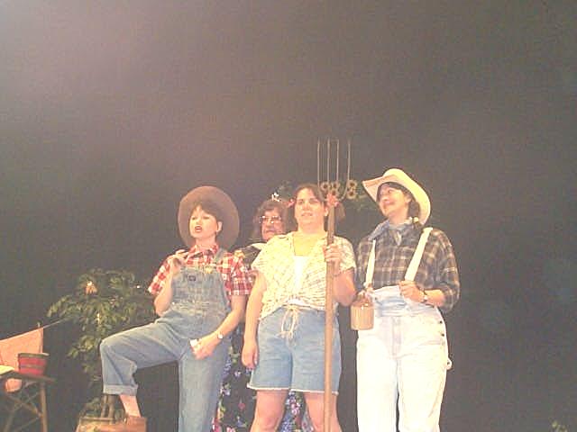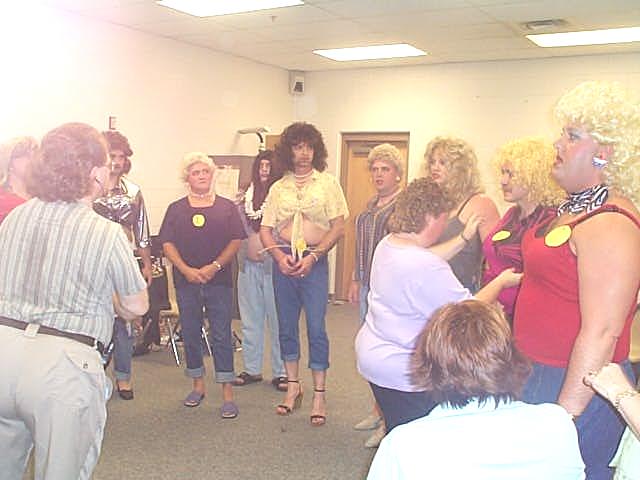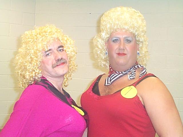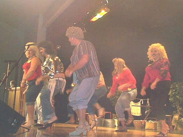 Minnie's Mice sing "Where Oh Where Are You Tonight" The new "Queenie Weenie 2002" was Curvy Curttina, dazzled the judges and inspired the crowd by vamping among them. Second runner-up was Teenie Tanya and first runner-up was Luscious Leslie, their real names to be divulged by word-of-mouth. Cancer survivor Faye Fitzwater took time to tell the audience about her two bouts with cancer, and how the disease affects most families, sooner or later. Fitzwater encouraged everyone to participate in Relay for Life this year. In addition to the "girls" performing customary acts associated with beauty pageantry, the crowd enjoyed some outstanding entertainment provided by the wonderful voices of Cheryl Jarvis and Amy Collins, the Soggy Bottom Boys, Minnie's Mice and the Hee Haw Girls. The womanless contestants also performed pageant talent. Wild Wilda performed a hog calling routine; Irresistible Ida Mae performed a comedy routine; Sensual Simone sang "Girls Just Wanna Have Fun;" Teenie Tanya played the mandolin and sang Tiny Tim style; Curvy Curttina sang "What a Girl Wants"; Maunakai shimmied her hula dance through the audience; Foxy Roxy read a brilliant original poem "I writ it myself" and Miss Ellie sang "You Ain't Woman Enough To Take My Man." The Relay for Life "Heaven's Helpers" team expresses their deep appreciation to the community for supporting this event.
