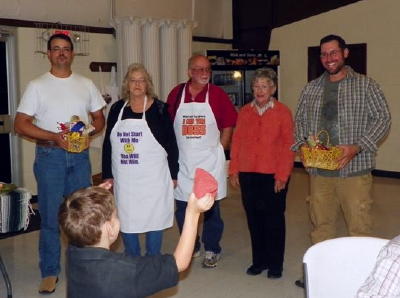 (L-R) Shane Steigleder 1st place chili winner; judges, Nina In the fruit pie division of the women's contest, Donna Cain took first place for her cherry pie; Gloria Stevens won second place with raisin pie; and Sophia Steigleder and Tami Allen tied for 3rd place with apple pies.