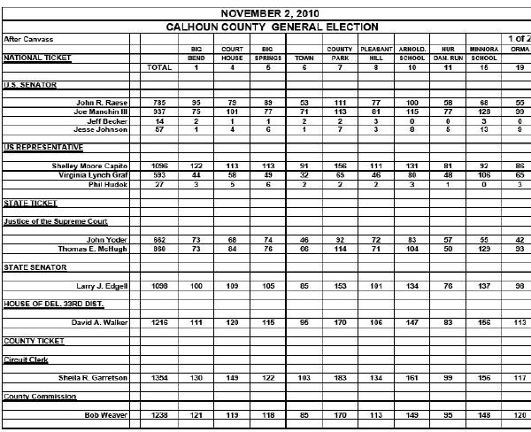 CALHOUN'S PRECINCT TOTALS RELEASED - Canvass Complete, Election Certified Friday