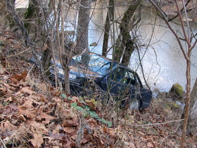 DRIVER ESCAPES INJURIES WHEN CAR CRASHES ABOVE LK RIVER
