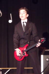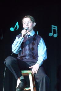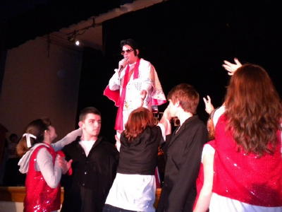 There is a wide variety of music, ranging from ballads to rock and roll. Some of the artists to be portrayed include Patsy Cline, Nancy Sinatra, Bobby Vinton, Michael Jackson, Chuck Berry, Connie Francis, Leslie Gore, and Patti Labelle, as well as groups such as Sonny and Cher, The Duprees, The Supremes and The Chordettes. And what would be a rock and roll show without the King of Rock and himself - Elvis, played by Bart Harper. Director Laurie Shultis said it was the first time the group did a production that was so widely received, with over 600 attending. "The reviews were absolutely incredible," Shultis said. "I think our record attendance was that people are able to identify with the "feel good music" reminiscent of their youth. Our impersonators did a spectacular job of honing their particular acts. They were so good they thought our cast was lip syncing." Twelve-year-old Kurt Shultis, after the curtain closed, had to prove in the hallway that he was actually singing the mellow tones of Bobby Vinton's Blue Velvet.